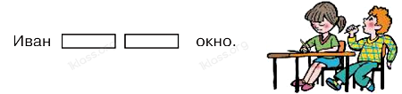 Для того чтобы дополнить предложение, нам нужно вписать в него два недостающих слова. На рисунке мы видим, что ученик вместо того, чтобы учиться, смотрит куда-то в сторону. Поэтому мы можем составить такое предложение: Иван смотрит в окно.