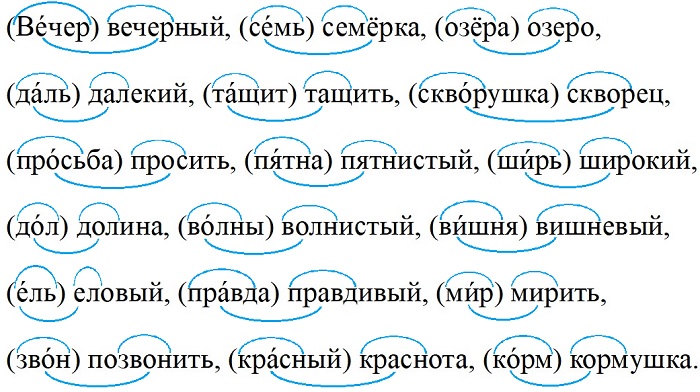 1. Вечерний — проверочное слово вчер.2. Семёрка — проверочное слово смь.3. Озеро — проверочное слово озёра.4. Далекий — проверочное слово дль.5. Тащить — проверочное слово тщит.6. Скворец — проверочное слово скврушка.7. Просить — проверочное слово прсьба.8. Пятнистый — проверочное слово пя тна.9. Широкий — буквосочетание жи-ши пишется с буквой <<и>>:.10. Долина — проверочное слово дл.11. Волнистый — проверочное слово влны.12. Вишнёвый — проверочное слово ви шня.13. Еловый — проверочное слово ль.14. Правдивый — проверочное слово првда.15. Мирить — проверочное слово ми р.16. Позвонить — проверочное слово звн.17. Краснота — проверочное слово крсный.18. Кормушка — проверочное слово крм.